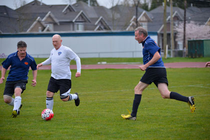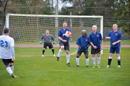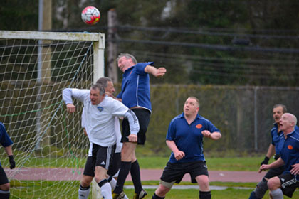 The Classics took the lead in the tenth minute after Macklin passed the ball to Alfie Deglan who hit a low shot into the corner of the net; his second goal in two outings. Four minutes later it could have been 1-1 but when the winger cut in from the right, his shot went across the face of the goal to safety. Soon after, Daryl Lawrie make a tackle like a professional wrestler; he had been reading about Hulk Hogan's $115 million sex tape trial and fancied a bit of the action, but all he got was a free kick awarded against him. Lawrie was in the action again in the 23rd. minute, only this time he was scoring a goal. From just inside the half, the ball was floated into the penalty box and as Boxtart came to gather, Lawrie looped a deceptive header - an own goal - over the big man to make the score 1-1. A penalty was awarded to the Classics on the half hour for a hand ball, and up stepped Danny Jensen to convert his sixth successful penalty for the team and to put them back in the lead. The advantage didn't last long though. The Burgermen were awarded a free kick after a tackle from Randy Hosler was judged to be not in keeping with the game. In almost an action replay of Lawrie's goal, the ball was again looped over Boxtart's head but this time it was an opposing player that beat him. Another goal could have fell to the home team but their speedy winger missed a sitter when he swung his leg but never connected and the half ended at 2-2.