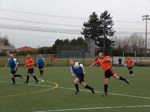 The first real attack went to the Pioneers in the second minute and Manny Soucker needed to be alert enough to make a diving save to prevent the visitors from taking the lead. The Classics first effort came on the four minute mark when a Rick Geary header was easily saved by the keeper. A minute later Chris Arcari shot the ball over the bar in another Classics attack.