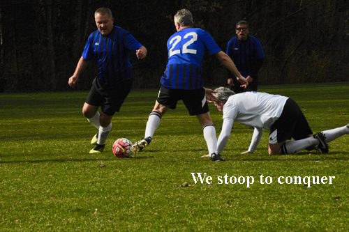 This was a cross-over game, contested by a team from the over 50s and a team from the over 55s, both teams having an official bye for the day. It was a case of upping the game for the Classics; by having to face a younger team and particularly after the debacle of last week... and step up to the plate they did. Under the tutelage of the Banda della Comasina, the Classics began the game in fine style by playing a great passing game which surrendered little possession to the opposition. The first chance came as early as the first minute after Jimmy Butler combined well with Wayne Ferguson to put the latter on route for goal. Unfortunately, his attempt on goal was well wide of the upright. The first corner for the Classics came in the 15th minute. Pat Rohla took the kick and after some bobbling about in the goal mouth if fell to Gordie Macklin who unleashed an O'Krane shot - no further explanation necessary. Pat O'Krane tried a shot minutes later but he couldn't manage an 'O'Krane' as his shot on goal went for a throw in!