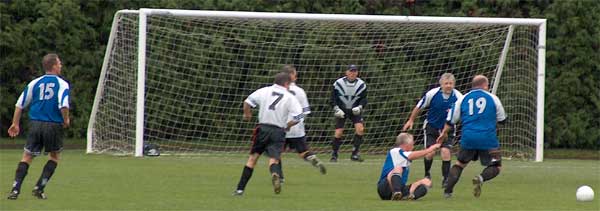 Chuck McGill somehow tripped over his own feet, much to the amusement of the rest of the team, and came thumping to earth to create a precursory effect of what might just happen should Mount St. Helens eventually erupt again. The Classics had several first half chances but their goalbound efforts were handled capably by the giant Delta keeper. He was estimated to be 6’-13” without his boots on so why were all the shots high on him? As the teams left for half time the score was 0-0 but in reality the Classics could have had a healthy lead but for some off target shooting and some heroics by the United keeper.
