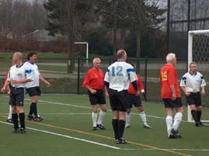 Try as they may, Britannia were finding it hard to play against the wind and the first half was pretty much one way traffic. The Classics had a strong squad out with recent absentees Rick Geary, Alfie Deglan and Tony Short all making welcome returns to the playing action. Britannia's keeper was certainly earning his corn as he was called on to make save after save, two of which from Cook and Deglan were quite outstanding. With most of the play in the Britannia half, it was surprising that the teams left the field with only Cook's goal to show for their efforts.