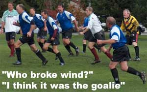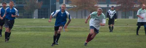 recently promoted (?) to the over 50’s league. With no referee present Dave Moore took the whistle for the first half,