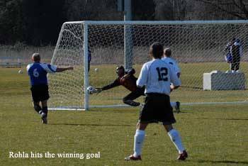 Five minutes later the lead was increased to two after Bill McAuley threaded the ball through to Rohla who was in the same spot as Butler was five minutes before. This time it was Rohla who fired a carbon copy goal again low to the left of the keeper. This was starting to look good for the visitors who were always aware that there are no easy games against Chilliwack. McAuley had a glorious chance to make it 3-0 but he fluffed his chance and the killer goal was not to be.