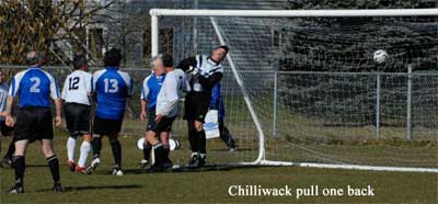 Ray Marrington had to retire from the game through injury so the Classics reformed their ranks to bring a return of the twin towers to the centre back positions. However, with 15 minutes remaining Chilliwack pulled back a goal after a shot eluded Hackel and went over his head and into the net to give the home side some hope of salvaging the match.