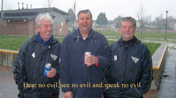 It's always Christmas time when the Classics visit the home of the Pioneers and it's always raining or inclement in some form. This year it was no different. On a field that is about as much use as sunglasses to a one eared man, kick-off time arrived and there was no referee. These two teams met earlier in the season and again there was no ref. Is there a referees curse, or are the referees frightened of handling this encounter? Anyway, out of the mist from the corner of the field, a pair of sunglasses arrived. It was "Mr. Hollywood" himself. He rolled up with the accompanying sunglasses, a deck chair, a whistle and a knotted hankie tied around his head. I lied about the whistle! He said, "Well, I've found the beach," and the game finally got underway.